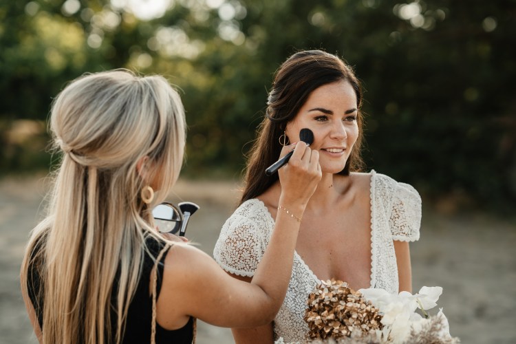 – Verzorging van het bruidskapsel en make-up op locatie